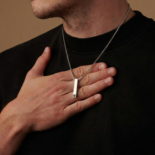 שרשרת לגבר עם תמונה מוצפנת + חריטה אישית