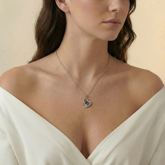 שרשרת לב משובצת מכסף 925 סטרלינג - עם תמונה מוצפנת