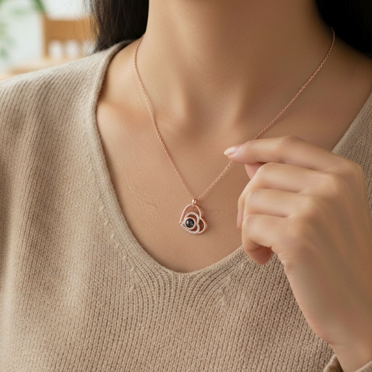 השני ב50% הנחהשרשרת לב משובצת - עם תמונה מוצפנת