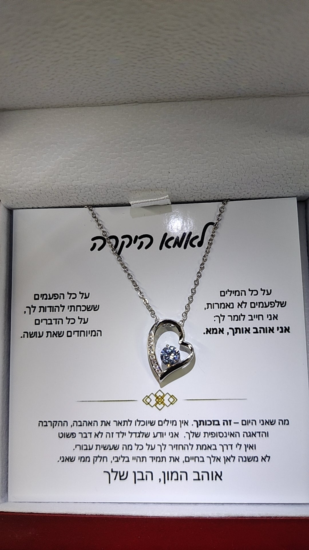 ברכה והקדשה מרגשת עם שרשרת בתוך הקופסה